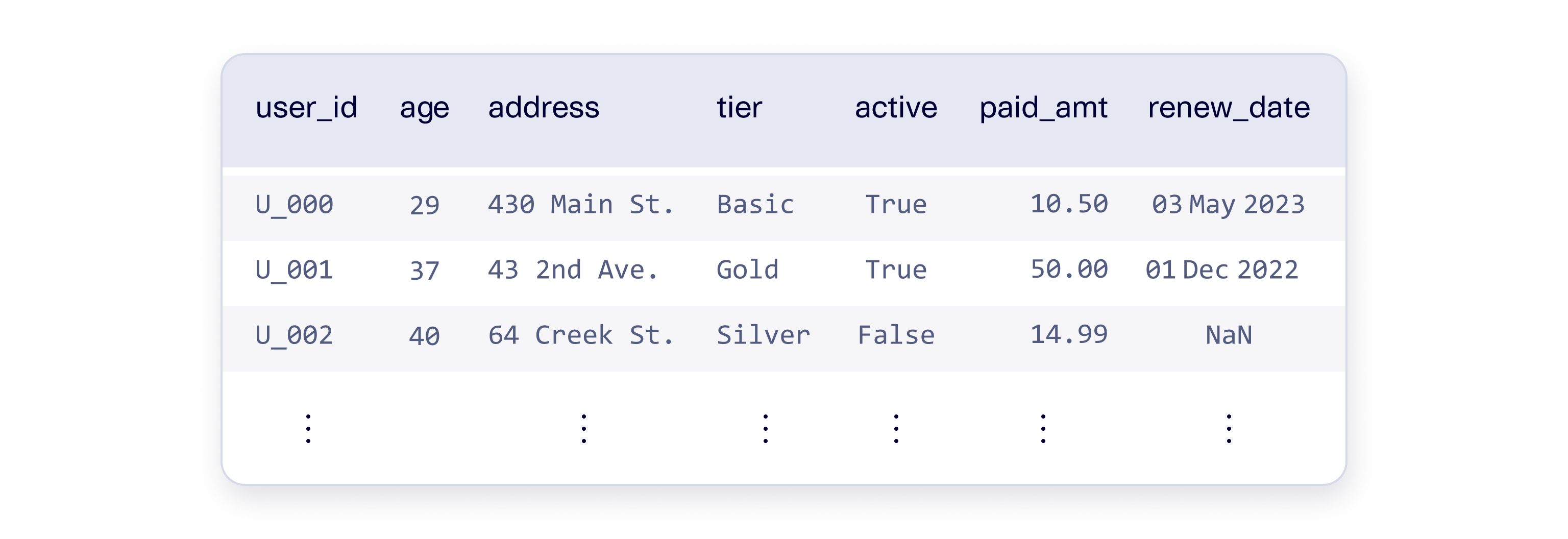 When describing a column, you will provide the column name and the data type, known as the **sdtype**.